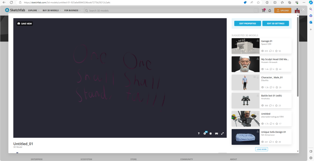 First I logged in to my Sketchfab account on a VR Headset from Open Brush so it enables me to then export and upload my Open Brush project from Open Brush to Sketchfab in which unfortunately, screenshots for the process on VR Headsets did not work, so I got someone else to help me upload my project.