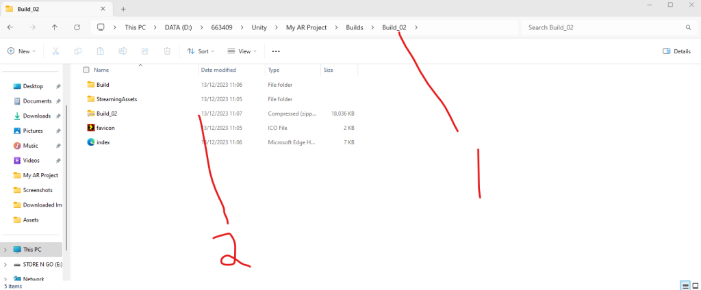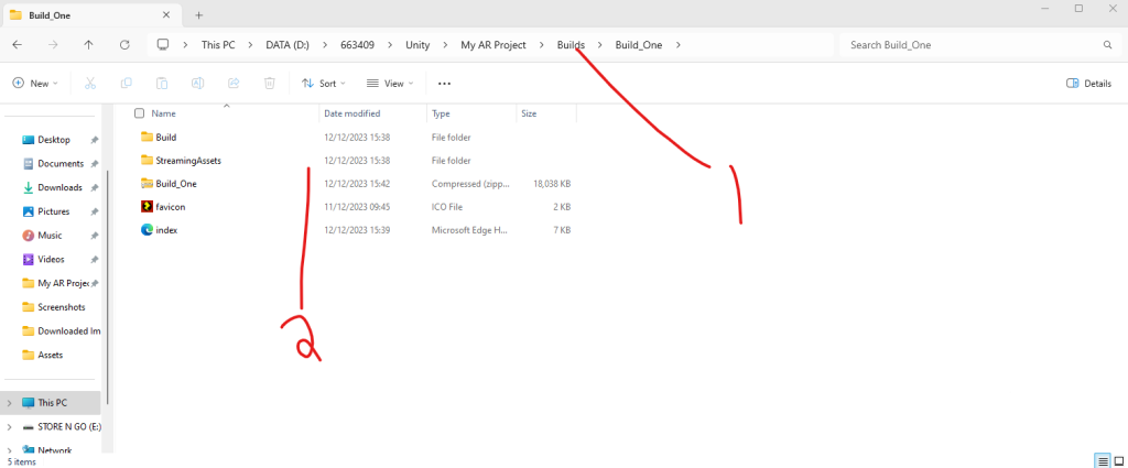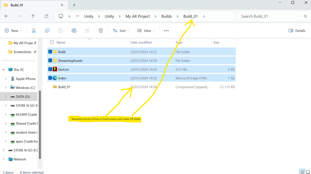 I have deleted Build_One and rebuilt the scene to name it Build_01 before making a Build_01 zip folder, rebuilding it to make an update to this AR test project.