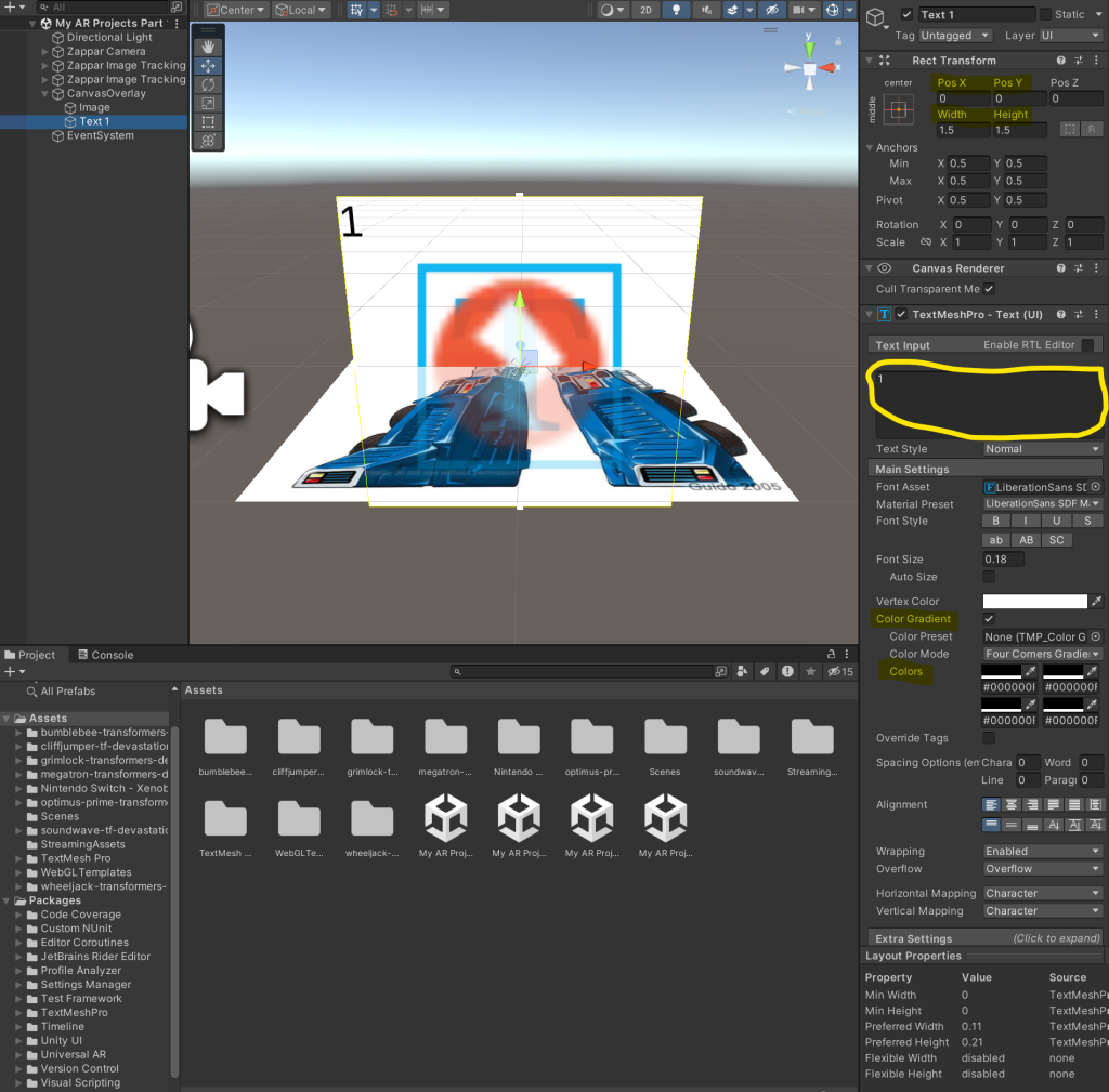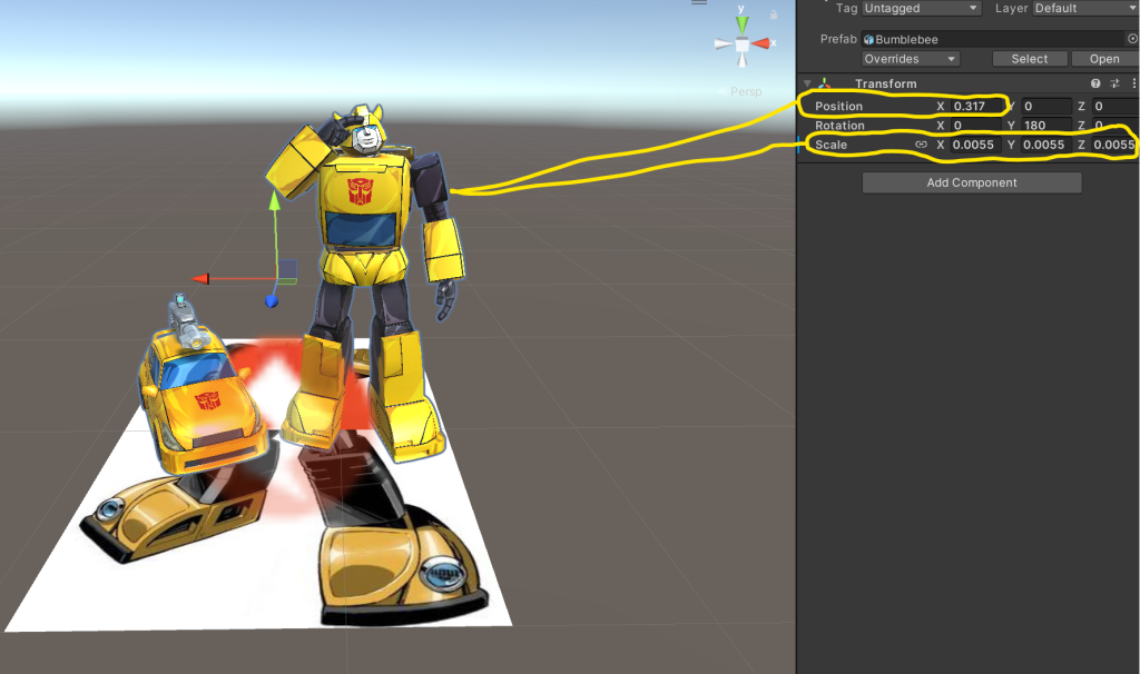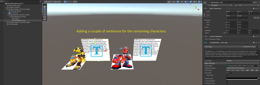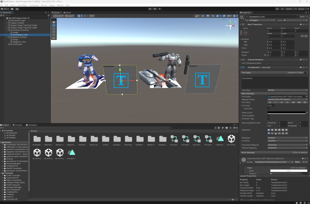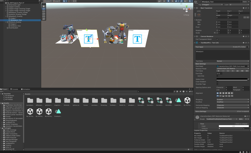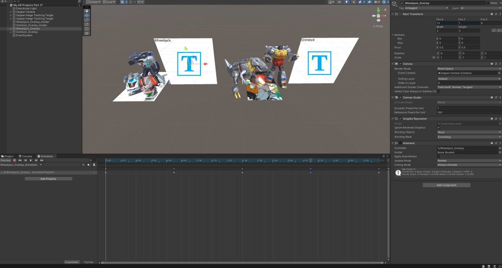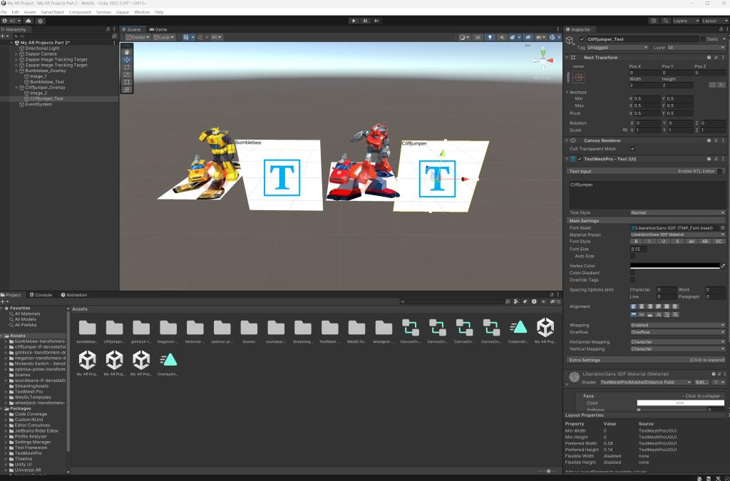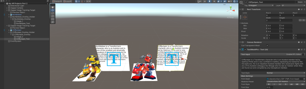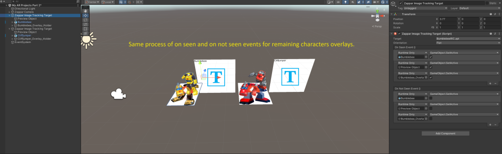 There were issues with the Bumblebee and Cliffjumper AR project as they were missing their overlay holders, so I went back and added them for Bumblebee and Cliffjumper’s overlays.