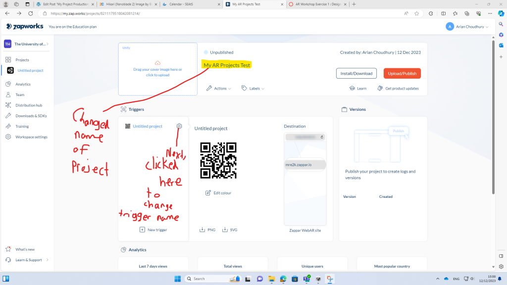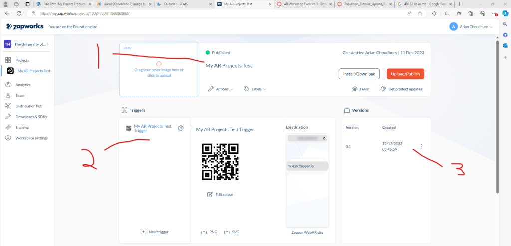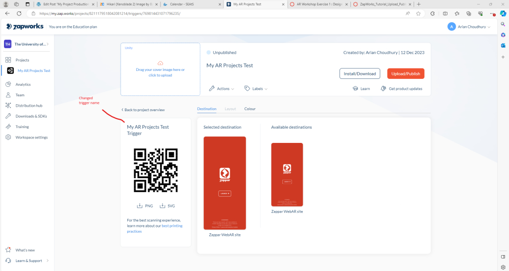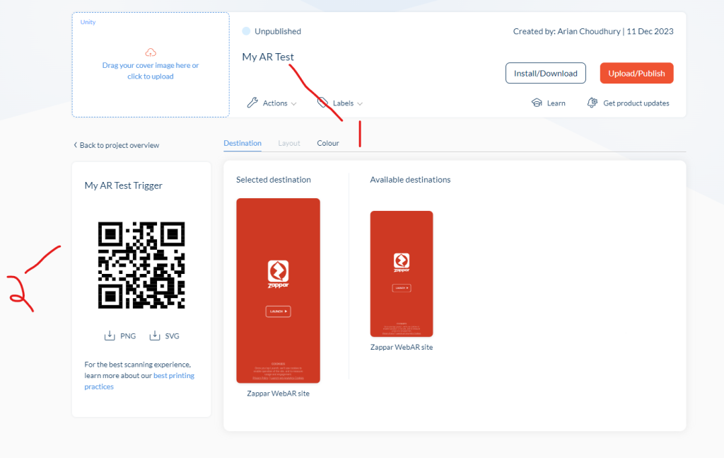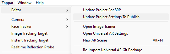 Then, I went to Zappar, Editor and clicked on Update Project Settings To Publish in order to ensure all backend settings are correct and finalised, ready to build my projects.