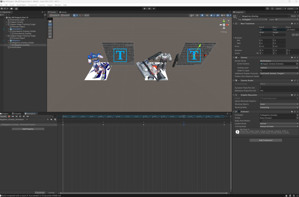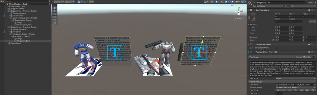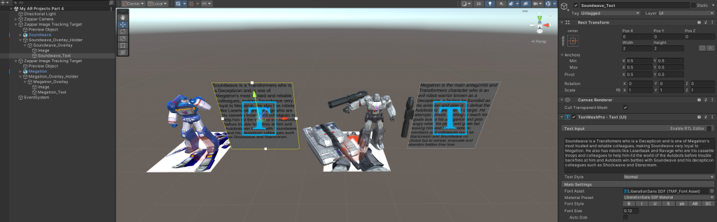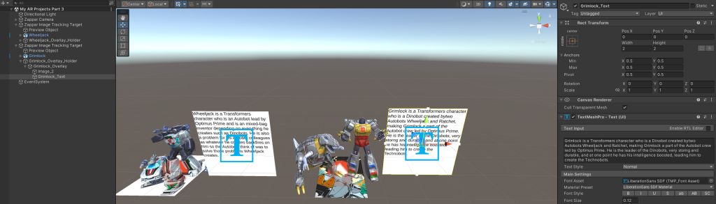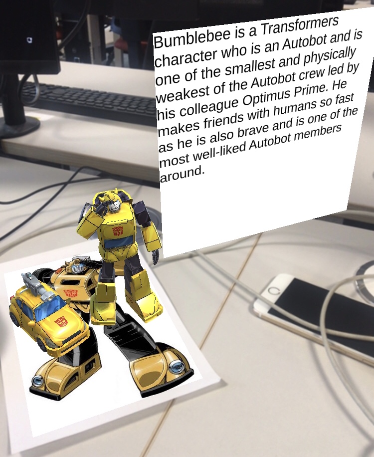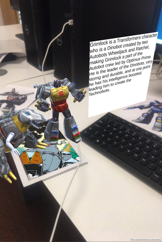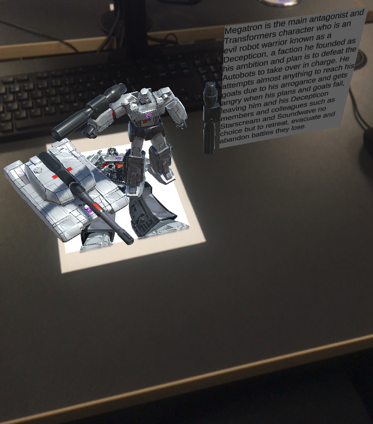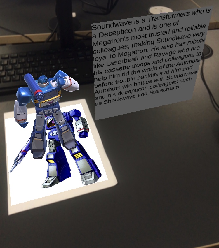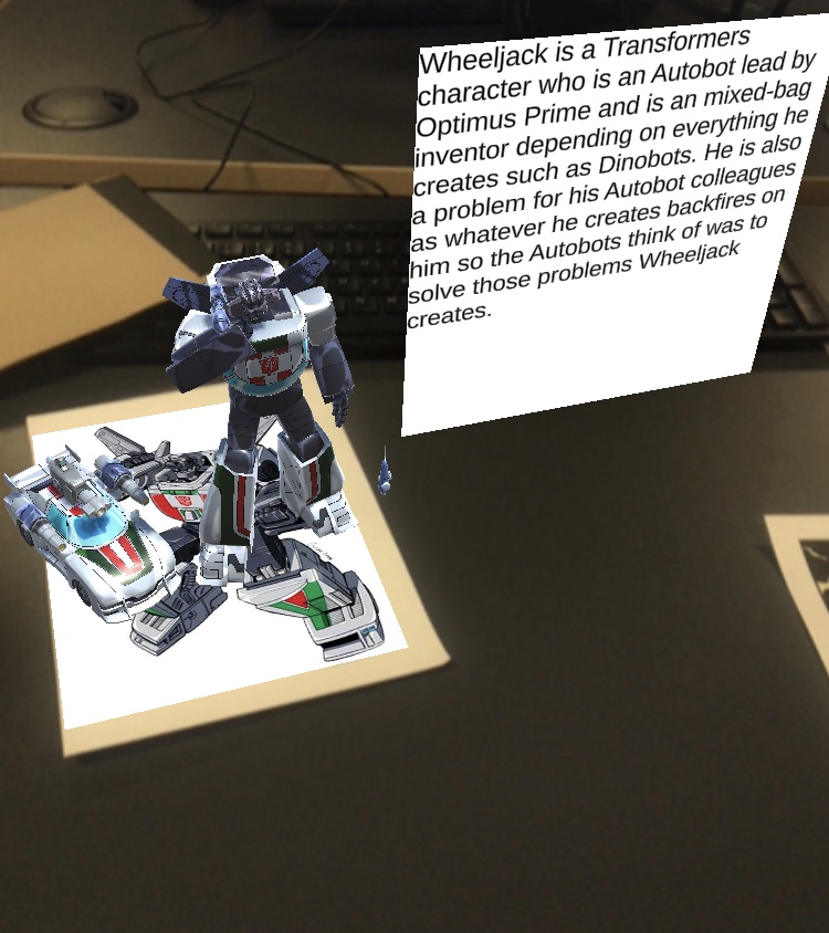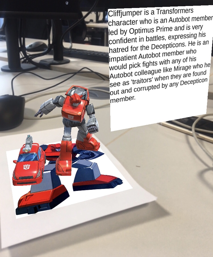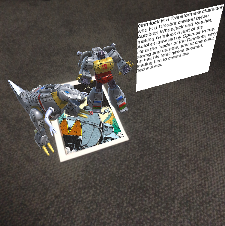 I tested out every remaining AR Project and all remaining AR trackers worked out very well, but I realised there was a spelling/grammar mistake where I forgot to space out two words on Grimlock’s bio overlay.