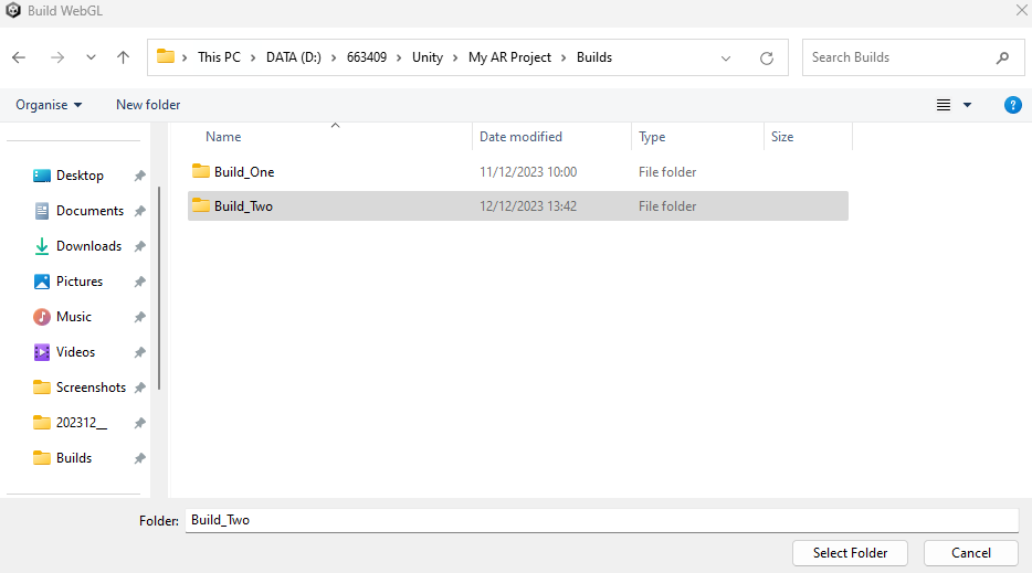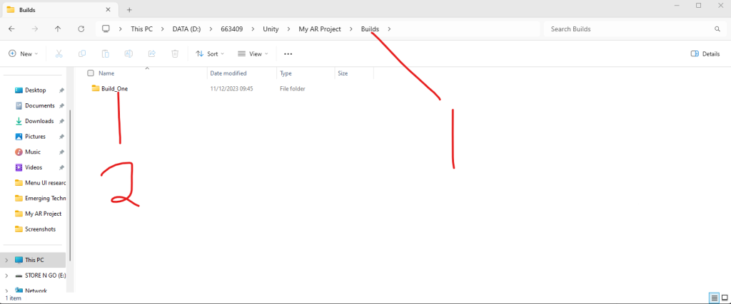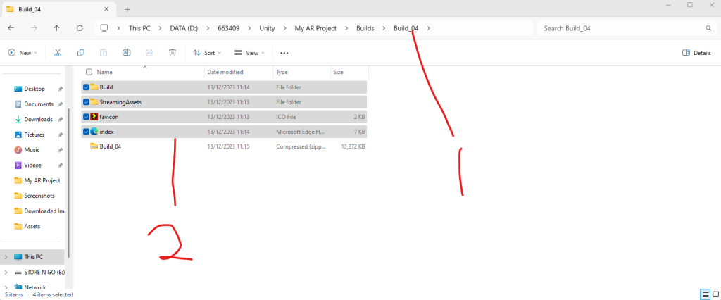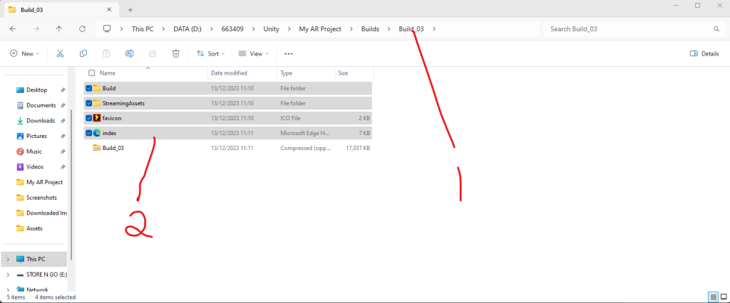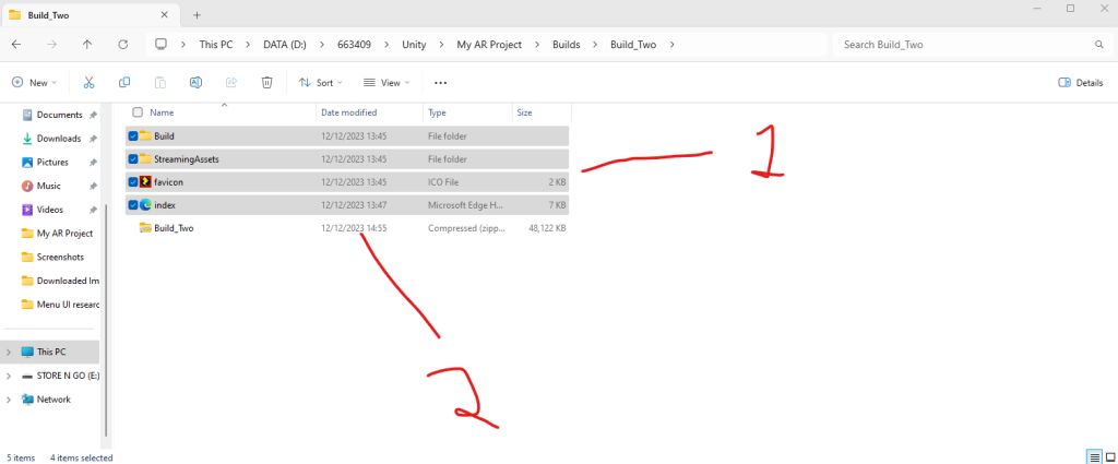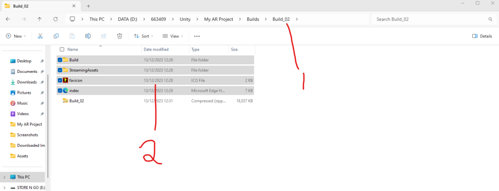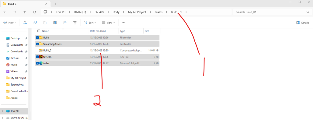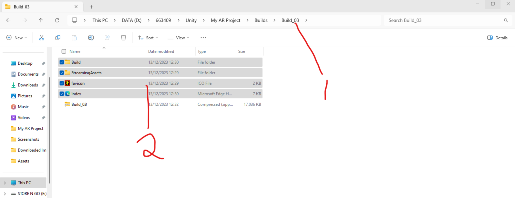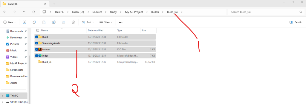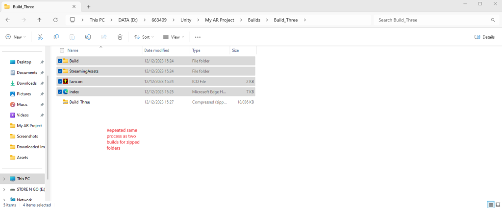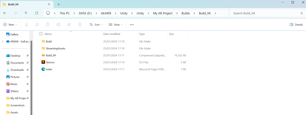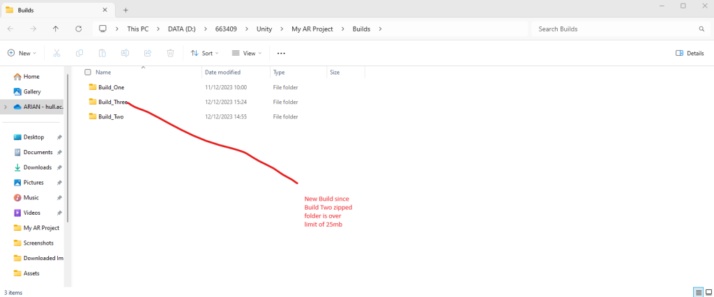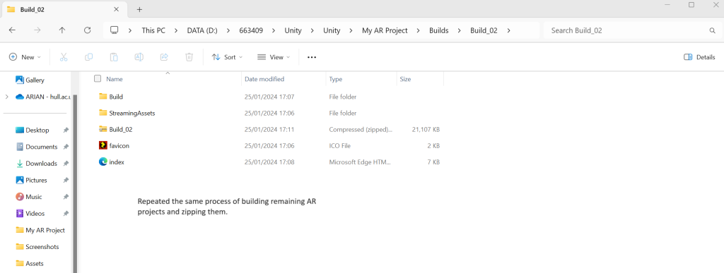 Afterwards, I have made a Zipped folder of my Build_One folder. The image shows the Part_One zip which is for one of my Sea Shack AR projects, but for one of my proper AR project build test, I put Build_One and made a zipped folder with the same name.