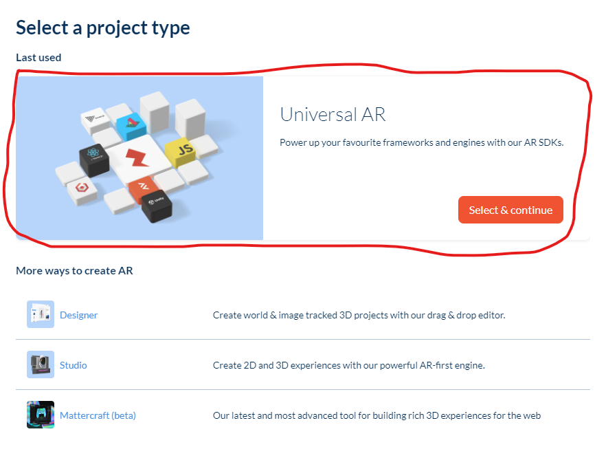 I then have added 4 new AR projects that I thought would become 4 proper AR projects as the ‘My AR Projects’ project at that time showed the Mythra model that was too small to see.