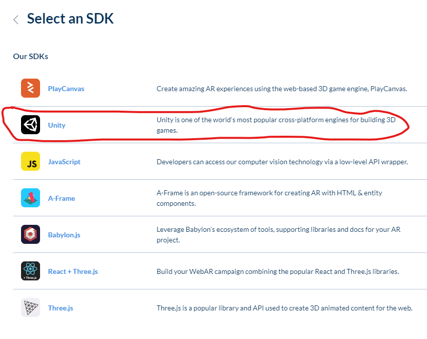 This image shows and indicates all 4 proper AR projects that were published, ready to test the AR trackers out.