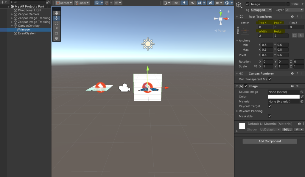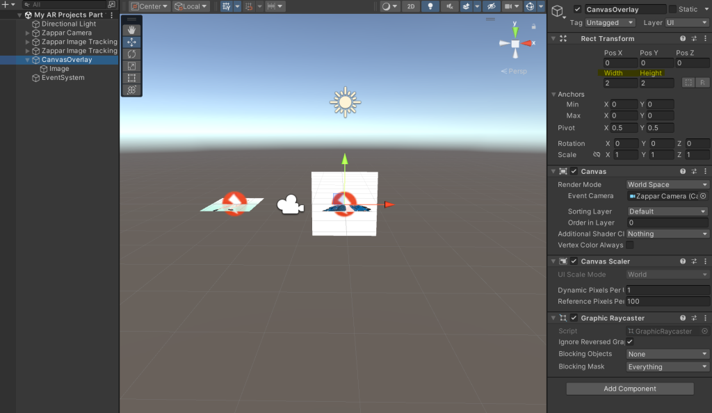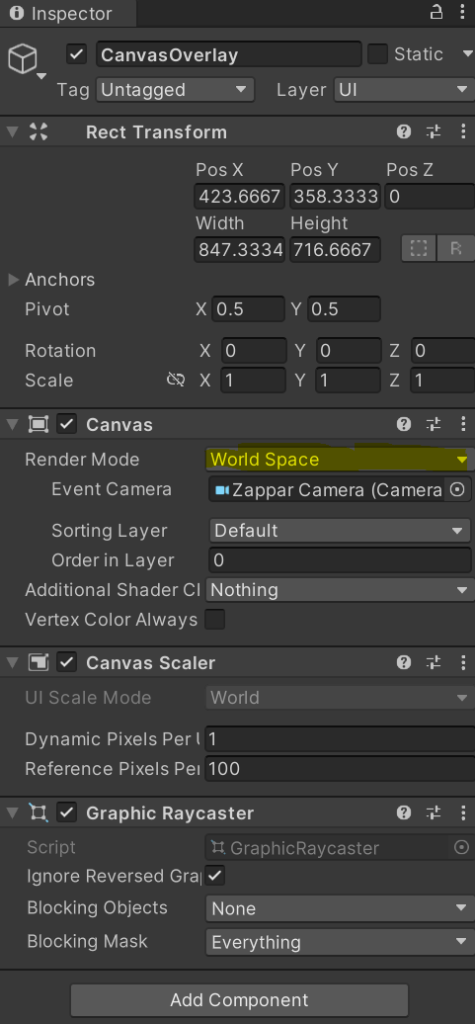 Another new technique I have also learnt is setting the Render Mode in the Inspector to World Space that also ensured Canvas Overlays used would appear in AR projects.