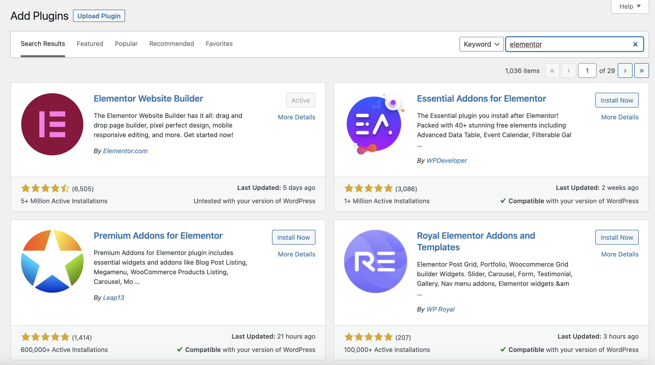 On your WordPress site, go to to add new, search via plugins and search for Elementor to click Install now in order to install it before going to the installed plugins via plugins to activate it.